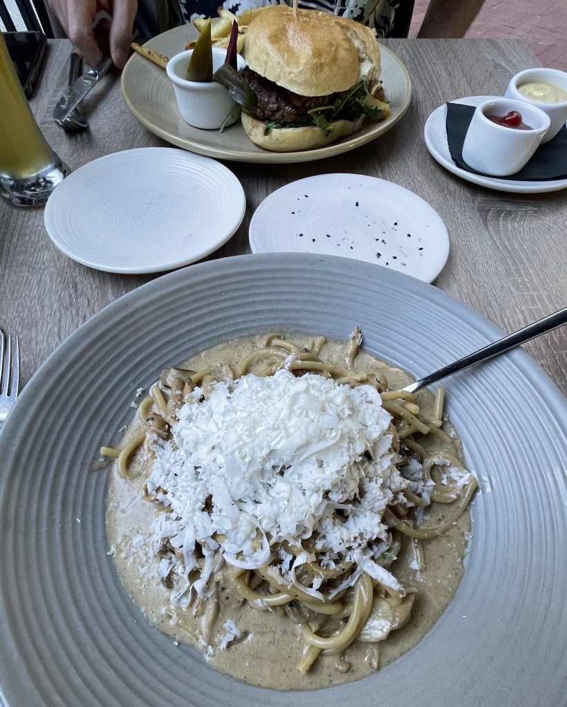 Downstairs at The Landsby is a beautiful restaurant – Mad & Vin. You can enjoy a wonderful dinning experience indoors, out on the patio, or in the courtyard by the fire pits. I recommend making a reservation for dinner to guarantee a table and it won’t take as long to be seated. The food is so delicious we ate there 2-nights in a row! We ate the BUCATINI & ROASTED MUSHROOMS pasta and it was so good that sharing wasn’t an option! Plus, they had this amazing CASTELVETRANOS & MARCONAS that is addictive – it’s basically a red pepper, tomato, parmesan dip with bread. It’s a $$ rating that is worth it with quality of food and a great ambiance.
